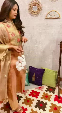 Women Peach Rajwada & Zari Kurta Set - Charkha TalesWomen Peach Rajwada & Zari Kurta Set