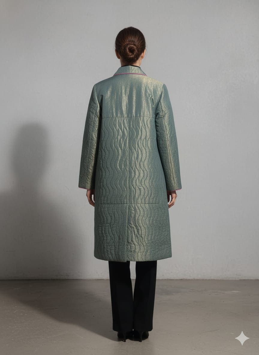 Banarsi Silk Women Quilted Jacket - Green
